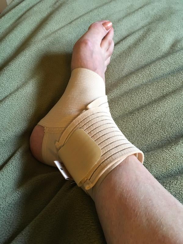 Crepe Bandage In Leg / When used with a dressing, the dressing is applied directly on a wound.